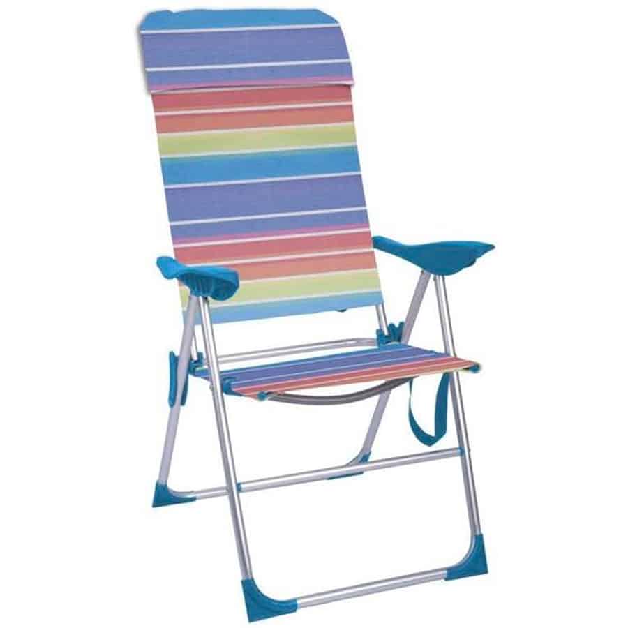 - Cadeira de Praia de Alumínio Alta Reclinável Riscas Multicoloridas Aremar;