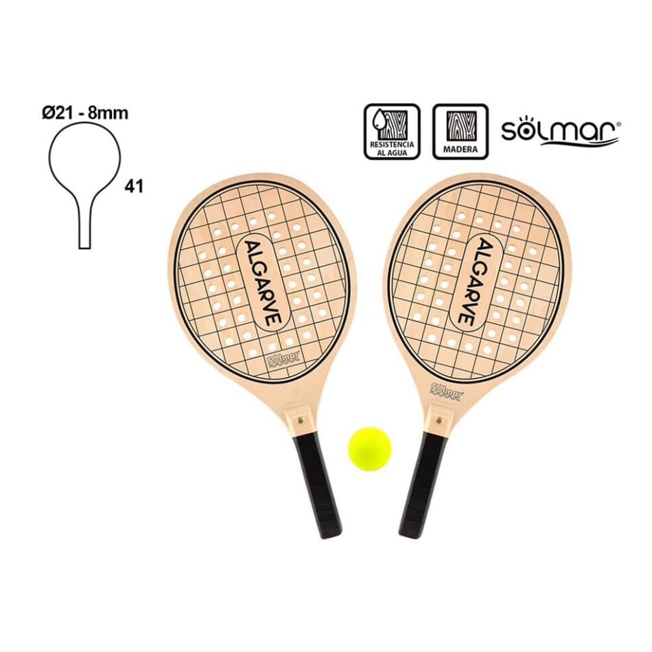 Conjunto Raquetes Praia Furos Madeira Algarve com Bola Solmar